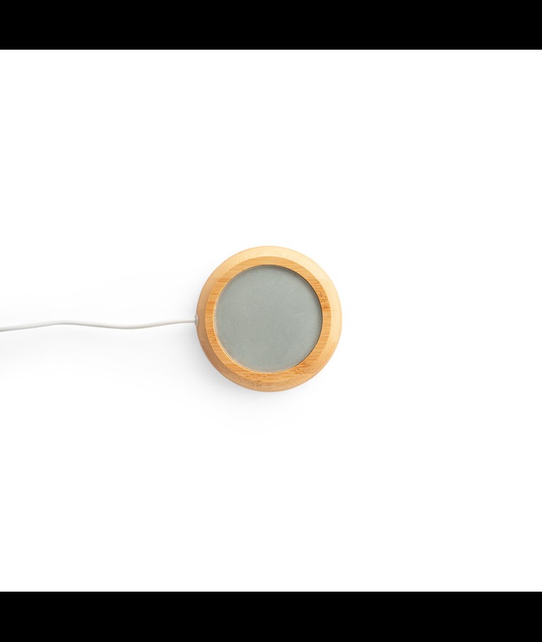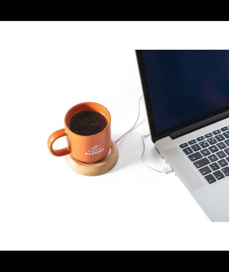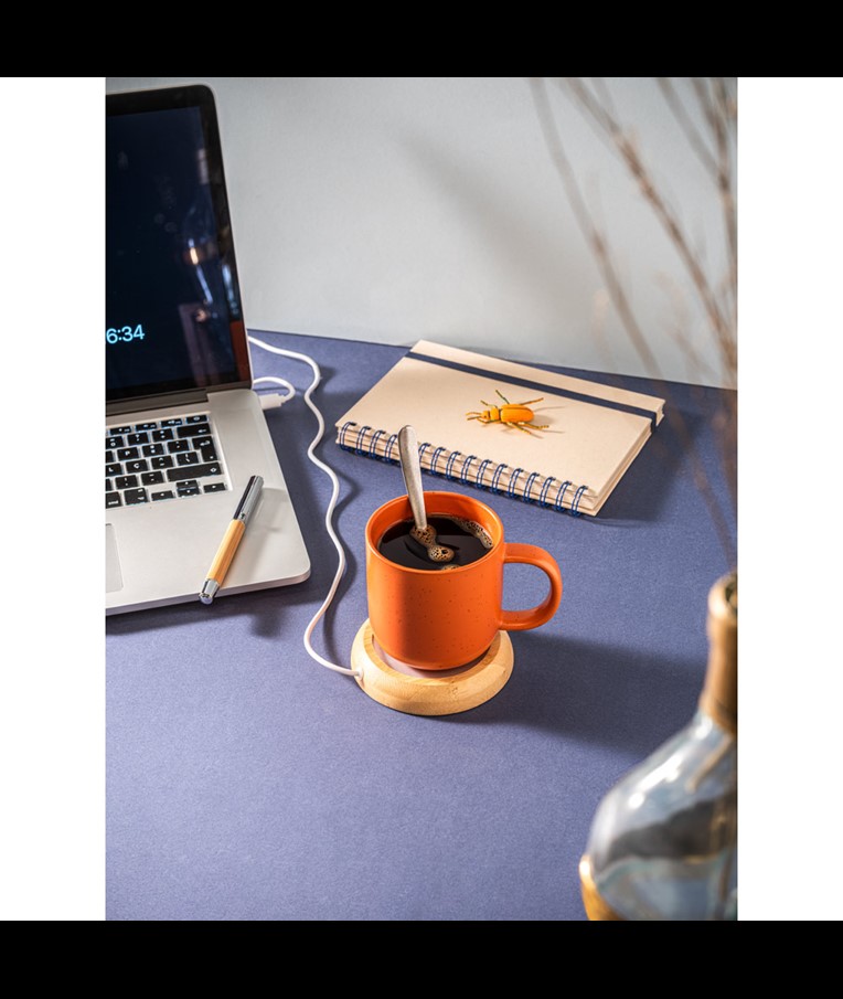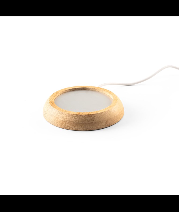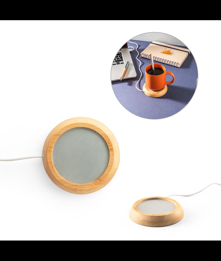 Grelnik skodelic iz bambusa s kovinsko površino in nedrsečim podstavkom. Idealno darilo za ljubitelje kave ali čaja, saj ohranja pijače na popolni temperaturi (50º - 60ºC) med delom ali uživanjem v prostem času. Združljiv z večino skodelic s premerom do 75 mm. Vključuje 90 cm kabel USB-A, ki je neposredno pritrjen na podstavek. Dobavljeno v darilni škatli iz kraft papirja. Ker je izdelek izdelan iz naravnih materialov, se barva in rezultat tiska lahko razlikujeta med izdelki. ø105 x 19 mm